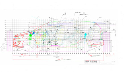 根据总布置设计的基本尺寸和设计要点,有造型设计师设计出各种汽车外形效果图和模型,然后确定汽车的车内设施设计。确定最佳方案后,再交总体设计师进行整车总体布置设计,确定整车总体参数后,进行油泥造型,定稿后再由总布置设计师进行整车总体详细布置设计。