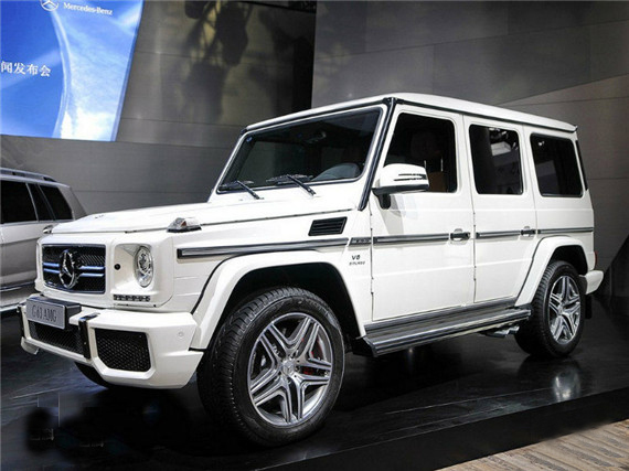 奔驰G63 AMG是基于最新的2013款改款奔驰G级打造的车型。相比普通版来说,奔驰G63 AMG配备了大尺寸的前保险杠,全套车身动力学套件使两款车拥有了极为动感霸气的效果。奔驰G63 AMG在动力方面也表现十分出色,新车搭载5.5L V8双涡轮增压发动机,最大功率544马力,最大扭矩760N•m。据官方信息显示该车从0-100km/h的加速时间为5.4秒,最大时速可以达到210km/h。奔驰G级AMG完美的兼顾了动力、舒适性和越野性能,而对应这款车的售价也十分高昂。